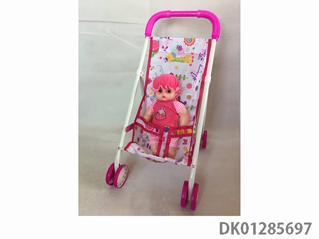 粉色铁制玩具推车带娃