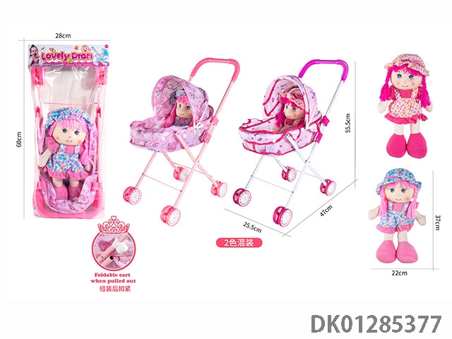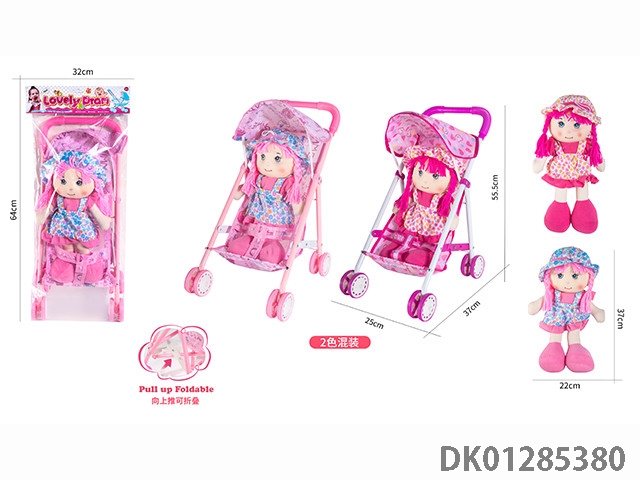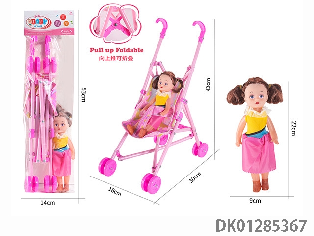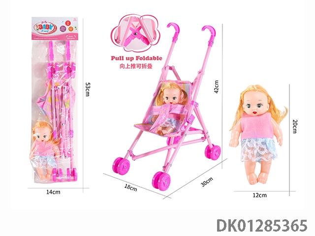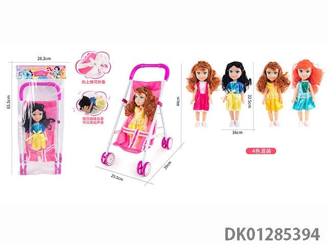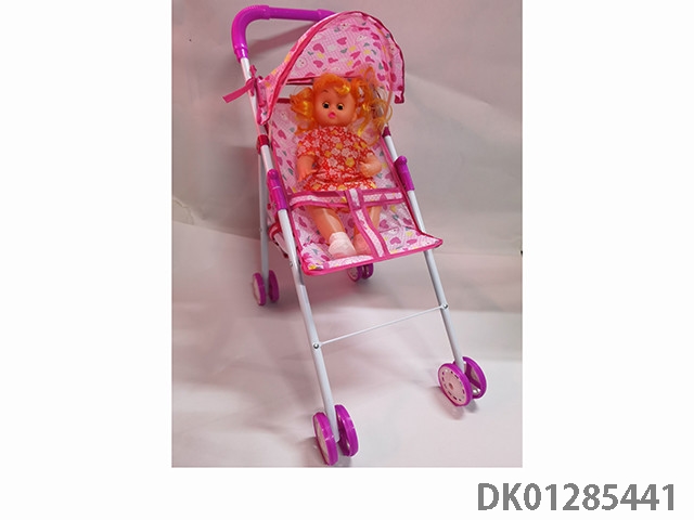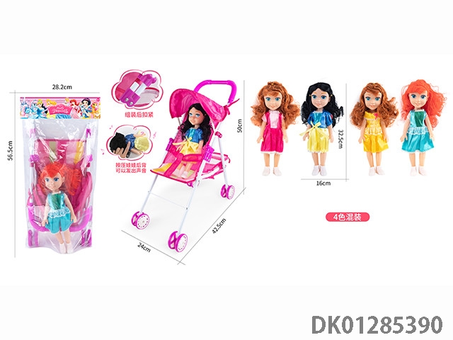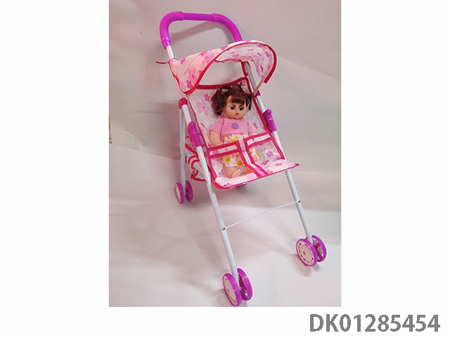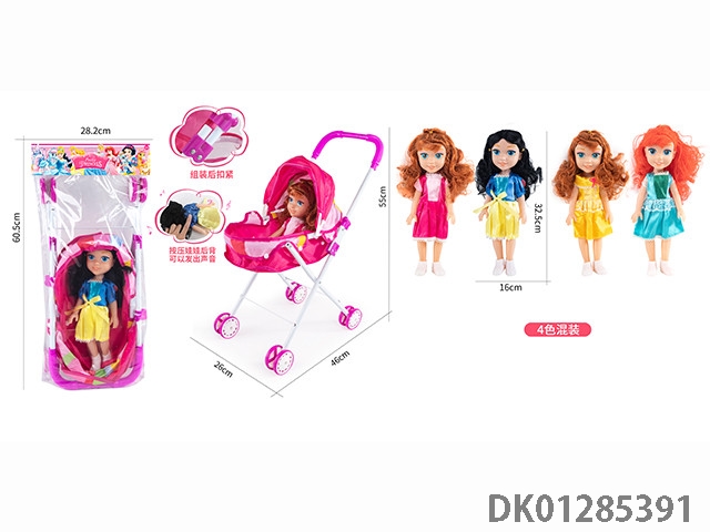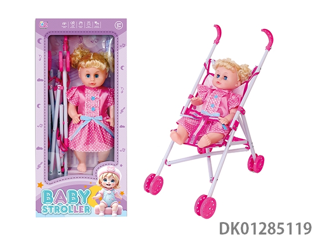 16寸空身活眼女娃带英文IC配塑料手推车