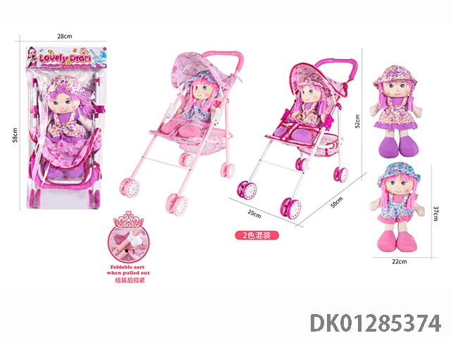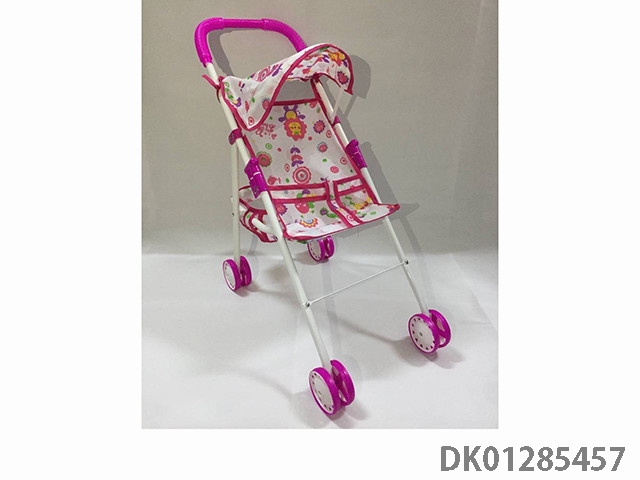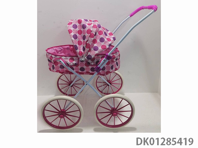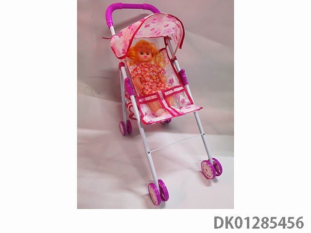 浅紫色铁制玩具推车带娃