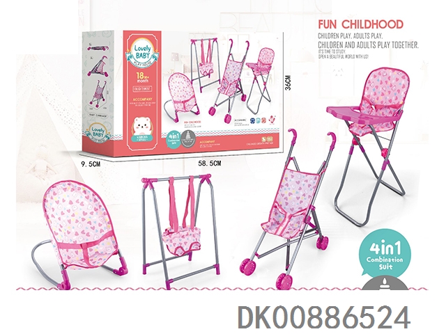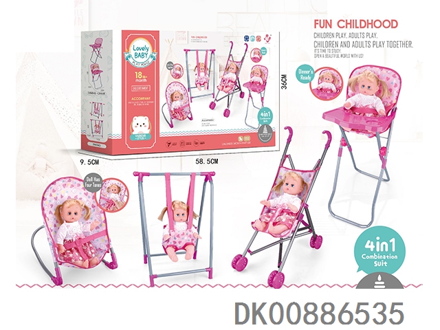 组合四件套(塑料推车,秋千,餐椅,摇椅)+14"IC公仔