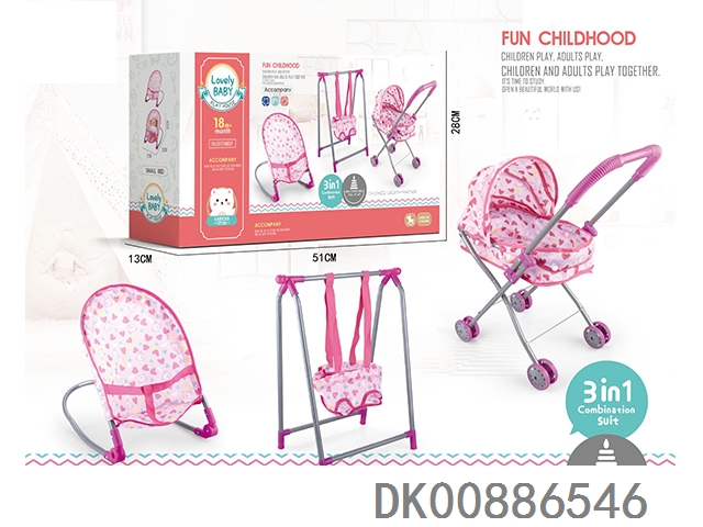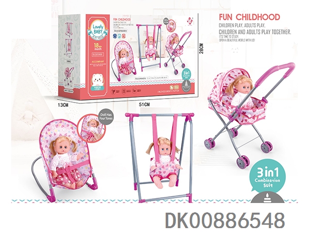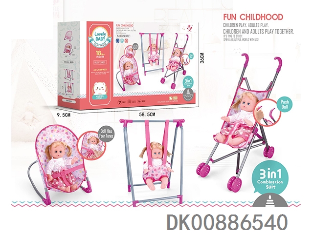组合三件套(摇椅,秋千,塑料推车)+14”IC公仔