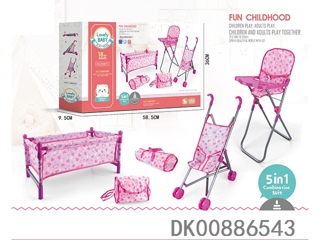 组合五件套(塑料推车+床+餐椅+背包+手提袋)