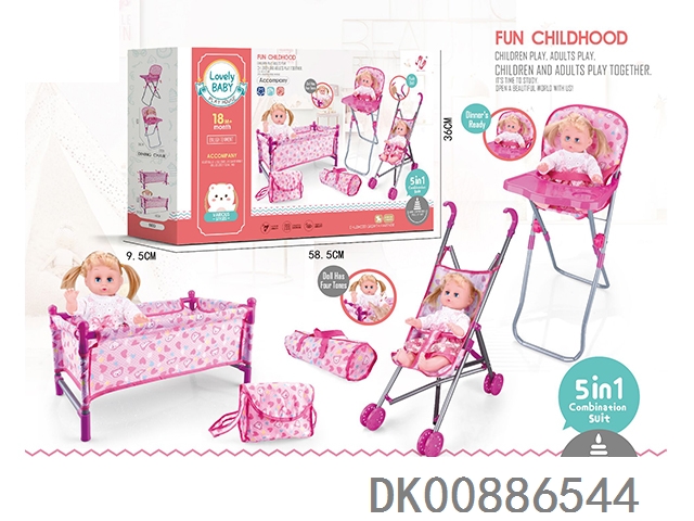 组合五件套(塑料推车+床+餐椅+背包+手提袋+14寸IC公仔)