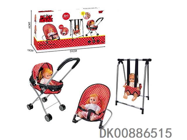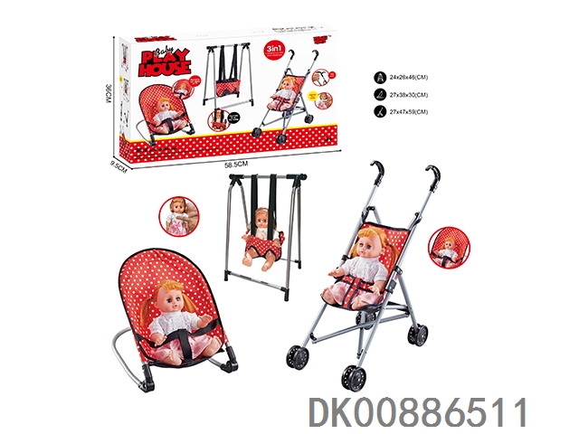 组合三件套(摇椅,秋千,塑料推车)+14”IC公仔