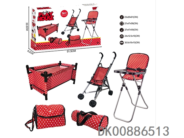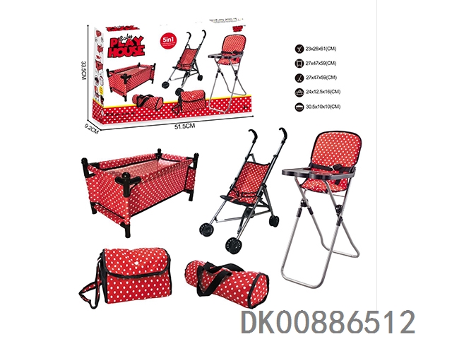 组合五件套(塑料推车+床+餐椅+背包+手提袋)