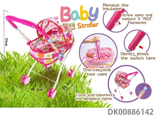 2合1彩色灯光扶手婴儿铁制平躺手推车+手提篮