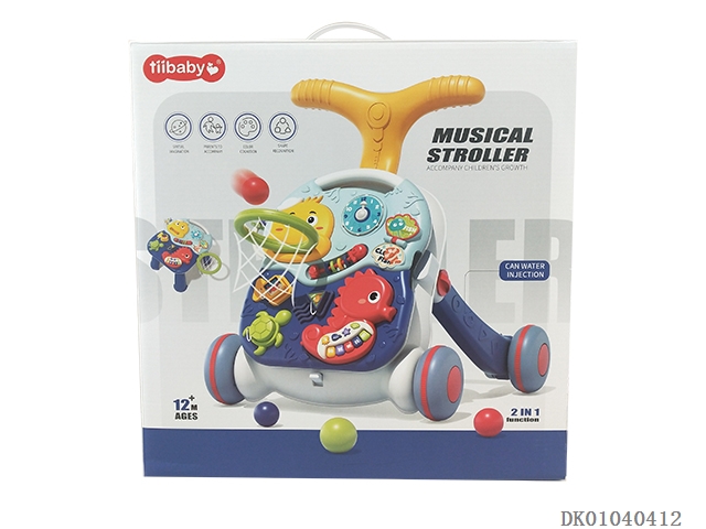 蓝色学步手推车三合一