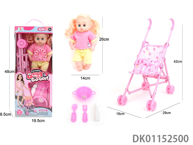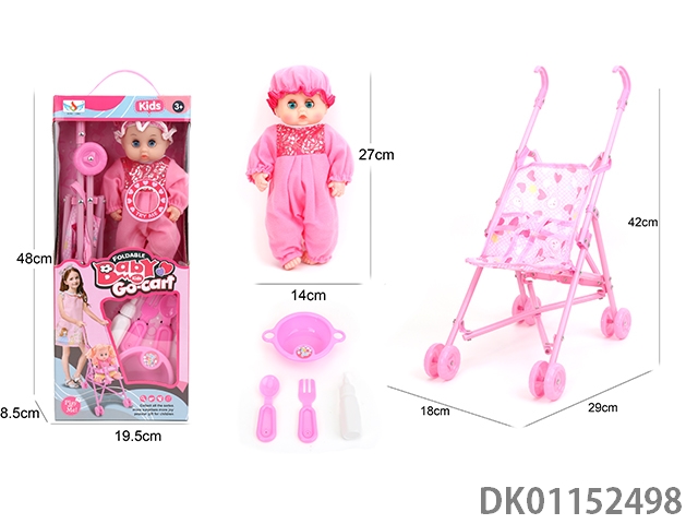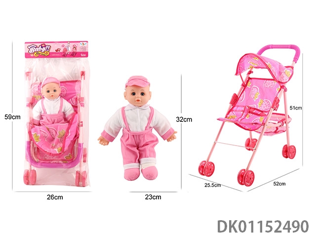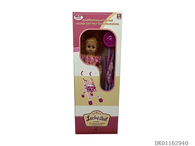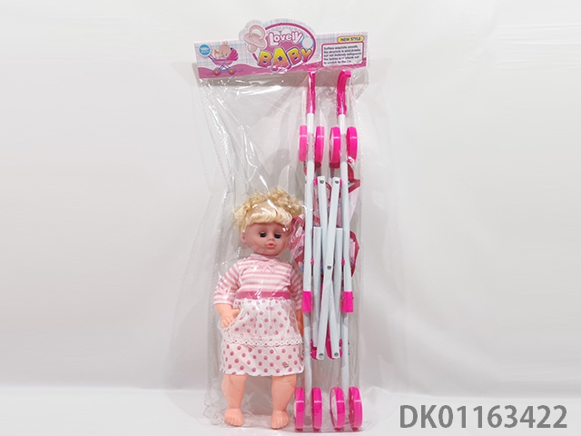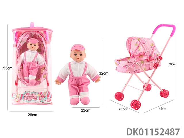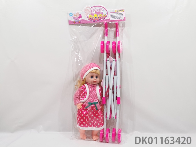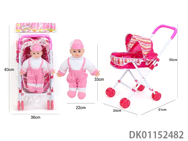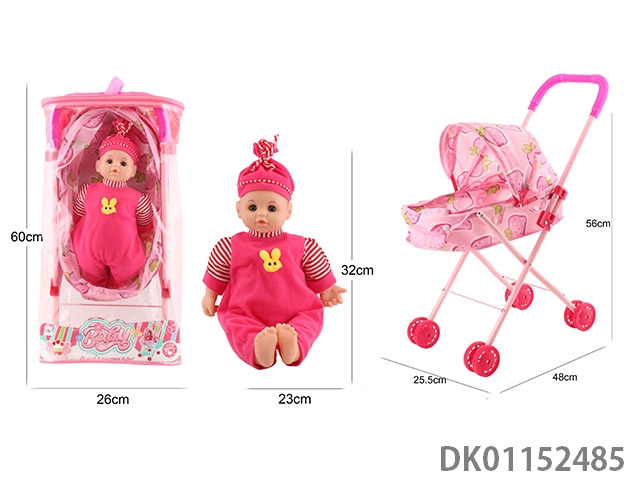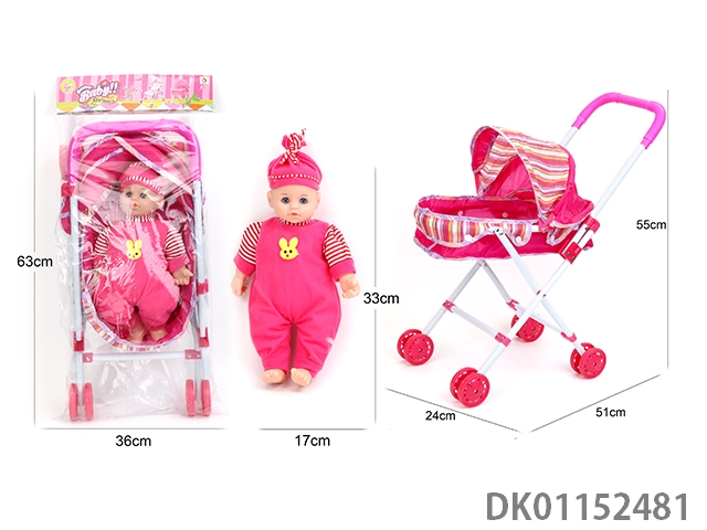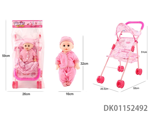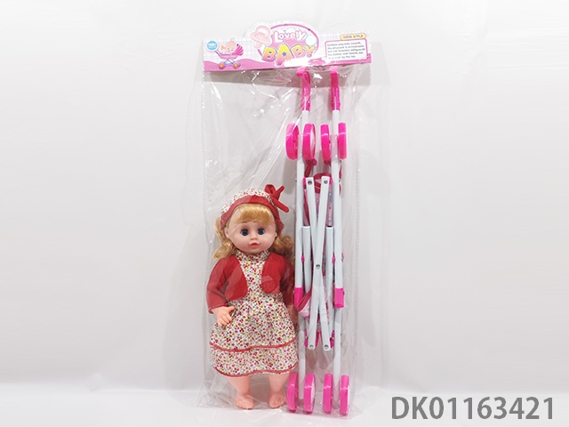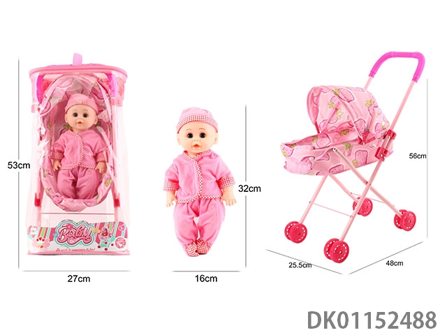 16寸铁制婴儿推车配活眼空心女娃带IC