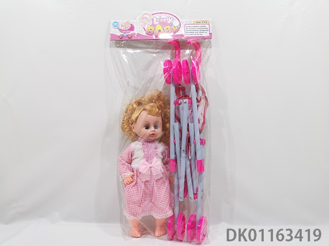 16寸塑料婴儿推车配活眼空心女娃带IC