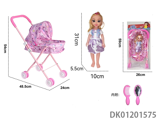 婴儿手推车配公仔+饰品