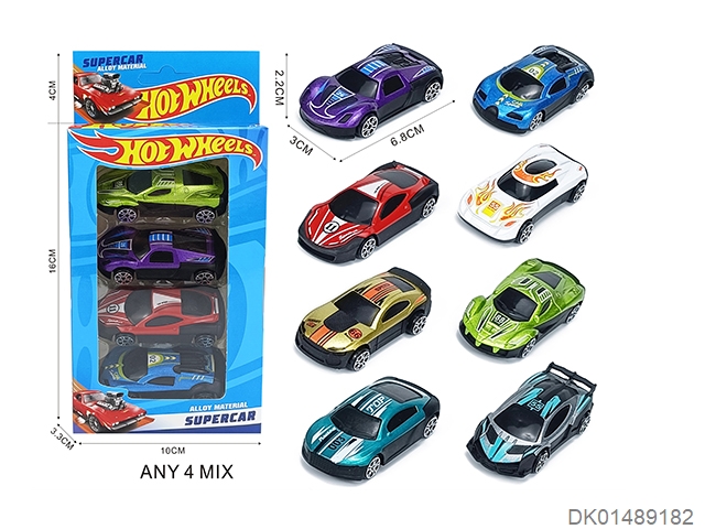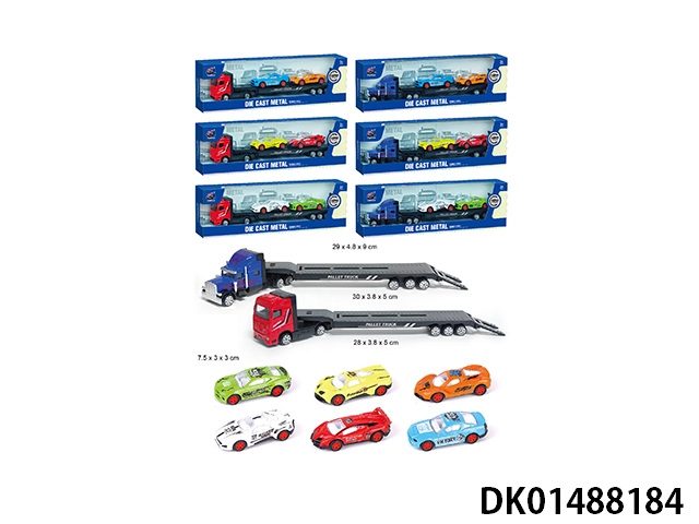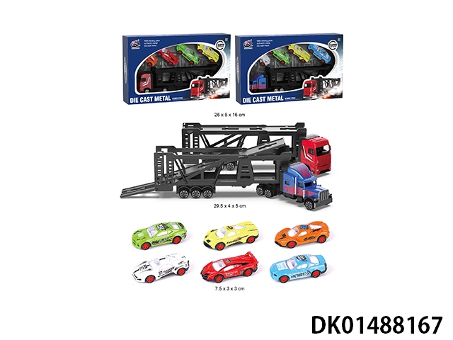 1:64合金拖头组合(两款滑行拖车)(六款跑车回力合金小车)