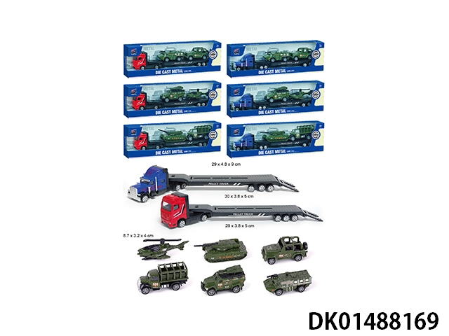 1:64合金拖头组合(两款滑行拖车)(六款军事回力合金小车)