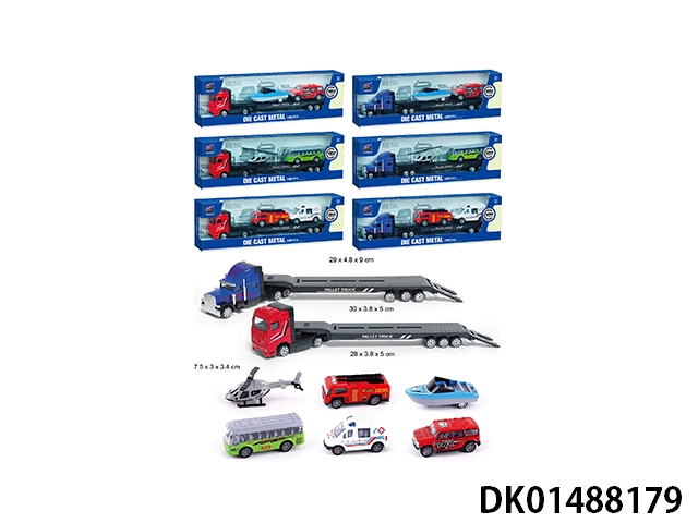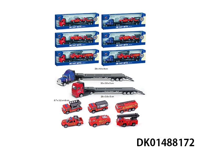 1:64合金拖头组合(两款滑行拖车)(六款消防回力合金小车)