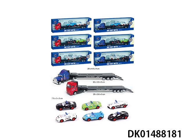 1:64合金拖头组合(两款滑行拖车)(六款警车回力合金小车)