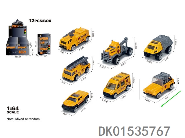 英文1:64工程合金车7款混装(3只装)车模 12盒/展示盒