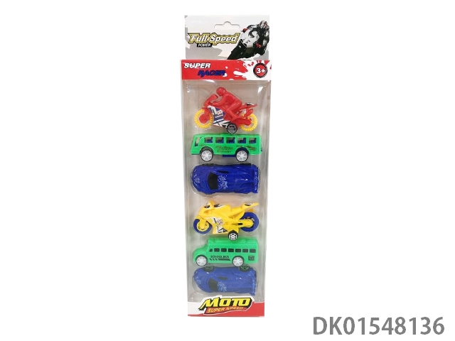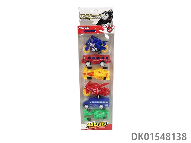 滑行实色摩托车巴士跑车校车(6只)5款4色