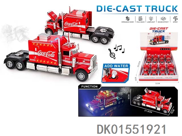 1:24合金 可乐 货车头 回力4开门 灯光音乐秀 带喷雾(8只装)