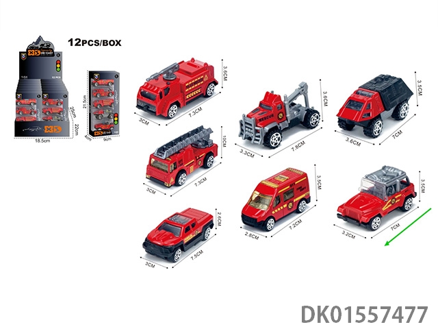 英文1:64滑行消防车 7款混装(5只装)车模 12盒/展示盒