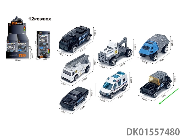 英文1:64滑行警车救援 7款混装(5只装)车模 12盒/展示盒