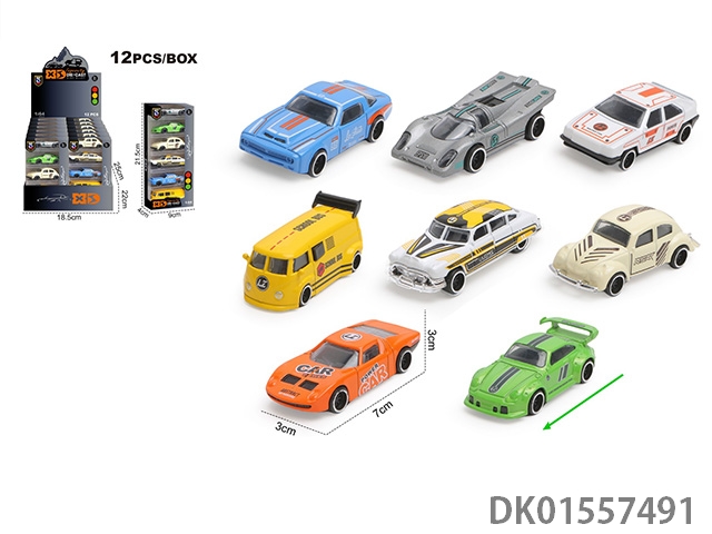 英文1:64滑行压铸锌合金6只装车模 12盒/展示盒(8款随机混装)