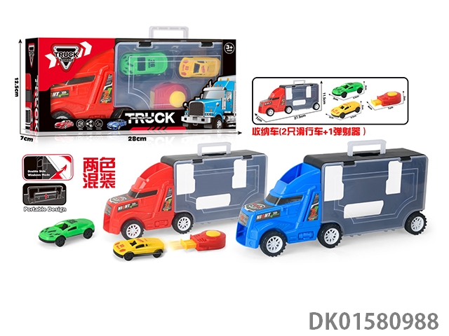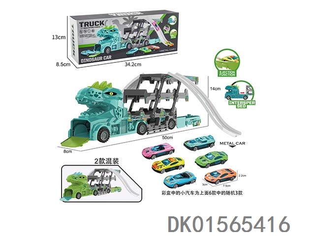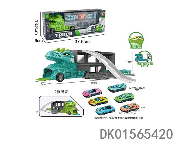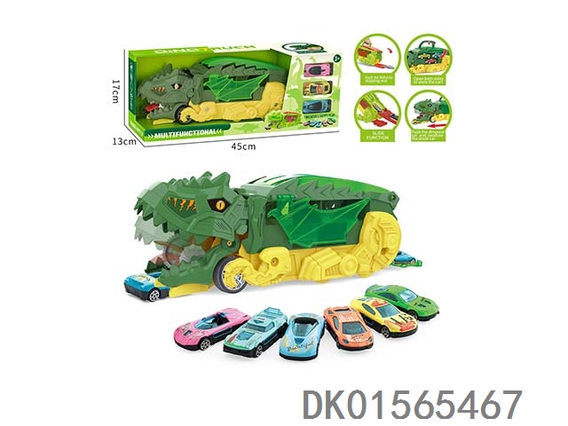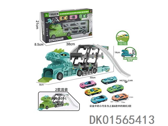 手提弹射收纳恐龙头货柜车(2色混装绿.蓝)