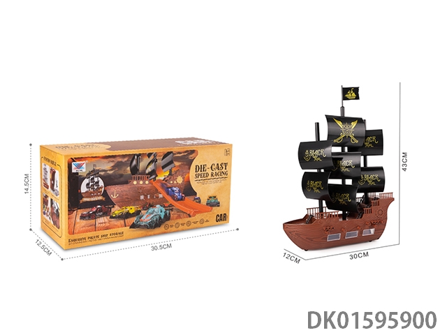 海盗船DIY收纳 配12辆合金小车+1滑梯 滑行