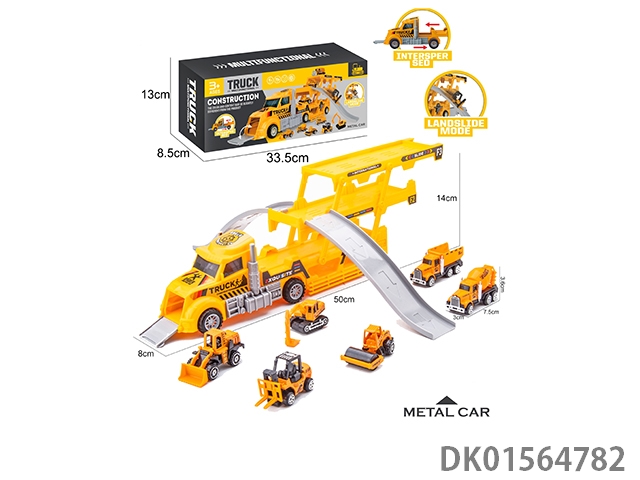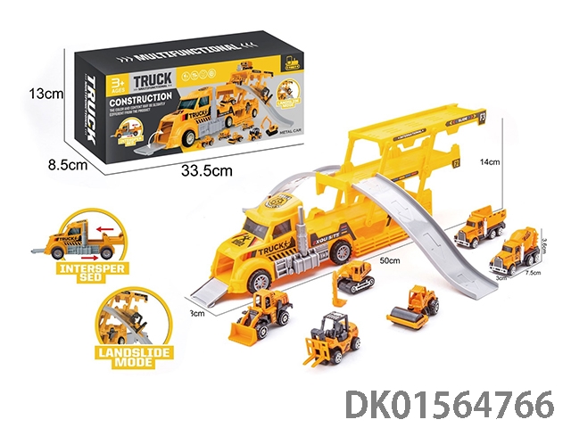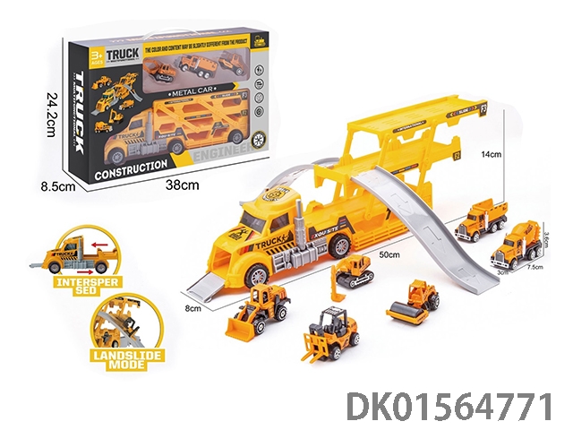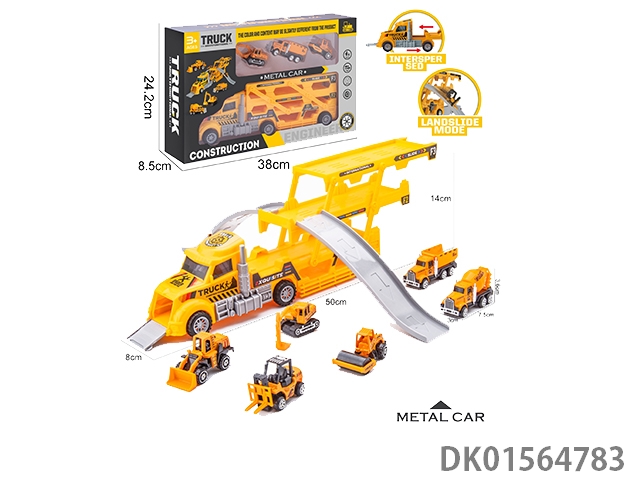 折叠货柜车-合金工程车轨道场景(黄色货柜车)