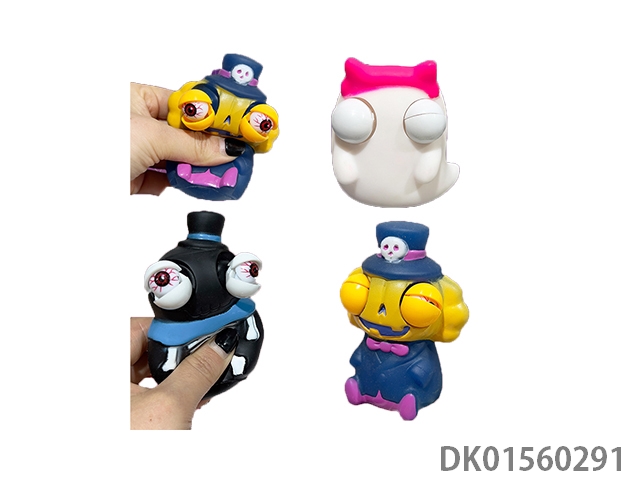 跨境爆眼万圣节捏捏南瓜鬼头瞪眼菜虫解压玩具捏捏乐减压神器批发