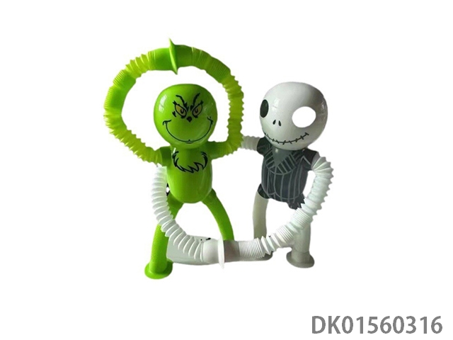 万圣节百变拉伸管减压伸缩管解压骷髅骨架头姜饼人雪人整蛊玩具