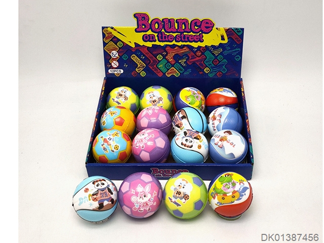 12只6.3CM卡通足球篮球高弹球12PCS/BOX