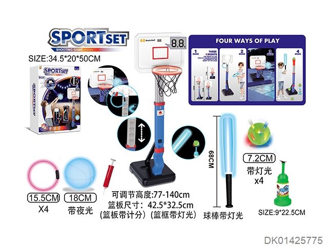 灯光计分篮球架+灯光计分池边篮球架+灯光套圈+灯光棒球(4合1)