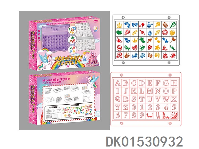 (独角兽/紫-3色泥)80个活字印章印刷机