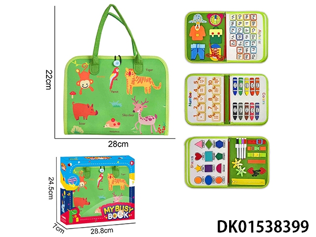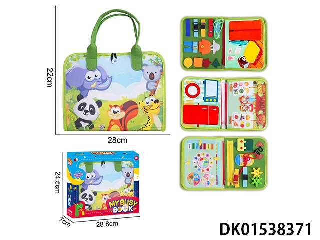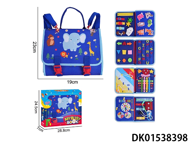 蒙氏儿童早教益智-毛毡背包蓝色5页野生动物忙碌版