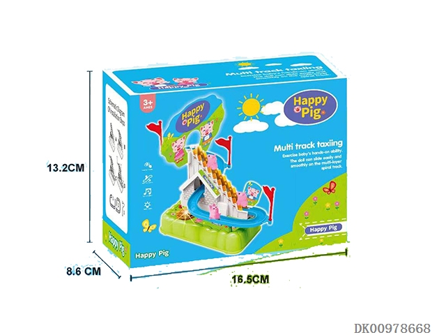 行轨道声光小粉猪儿童益智玩具3只小鸭爬楼梯灯光音乐(不包电)