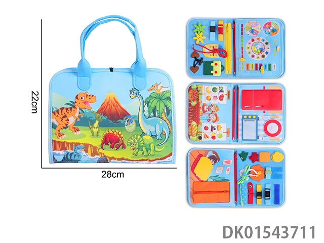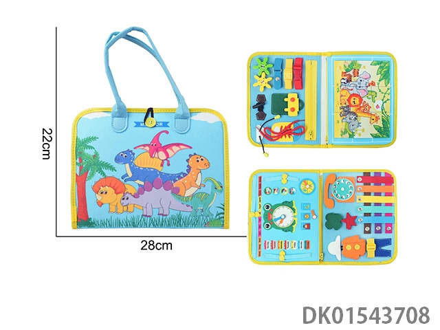 蒙氏儿童早教益智-毛毡蓝色5页恐龙忙碌版