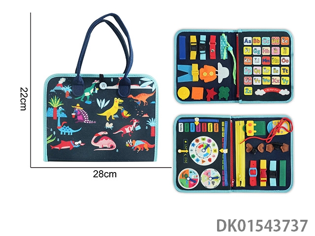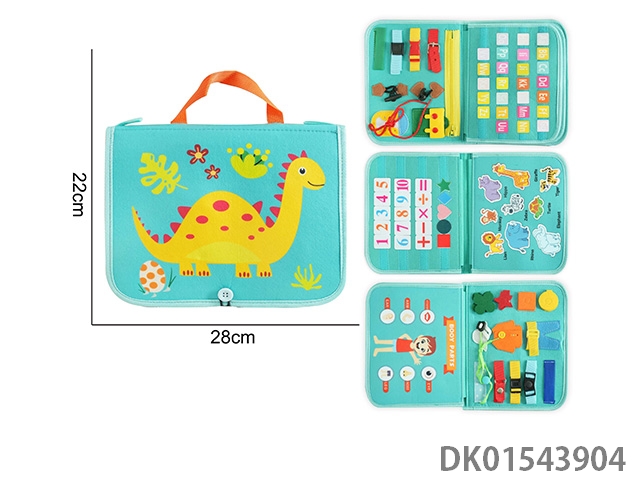 蒙氏儿童早教益智-毛毡4页蓝绿手提恐龙