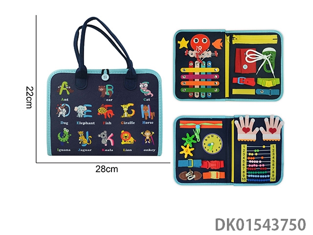 蒙氏儿童早教益智-毛毡3页动物字母款忙碌板