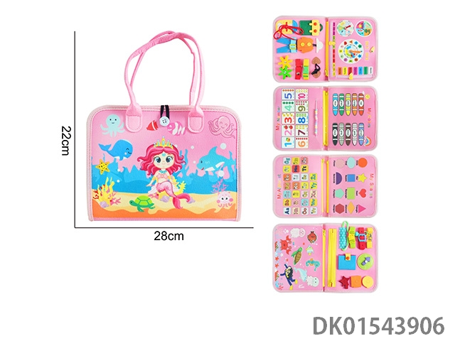蒙氏儿童早教益智-毛毡粉色3页彩虹美人鱼带魔术贴