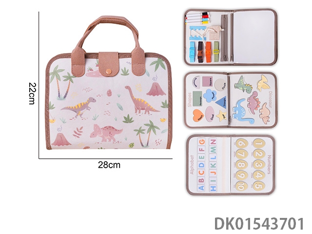 蒙氏儿童早教益智-毛毡卡其色4页恐龙忙碌板
