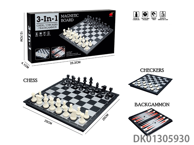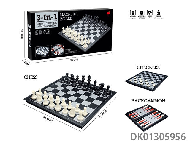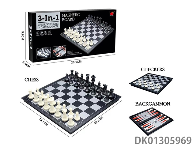 3合1(折叠磁性国际象棋/国际跳棋/双陆棋)