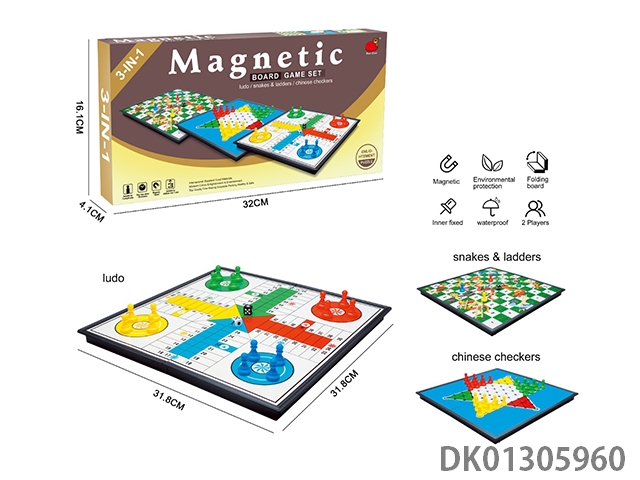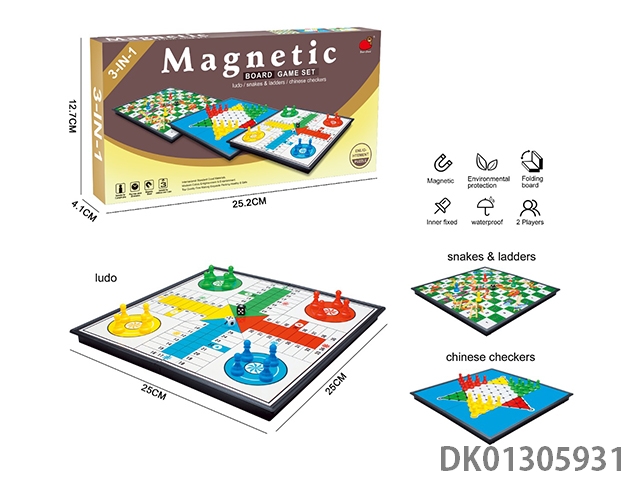 3合1(折叠磁性跳棋/蛇梯棋/骰子棋)