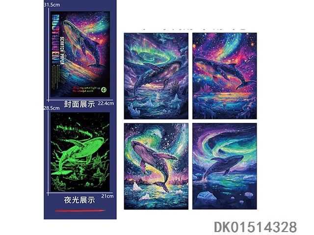 夜光鲸鱼刮刮画炫彩刮画本成人减压创意绘画DIY