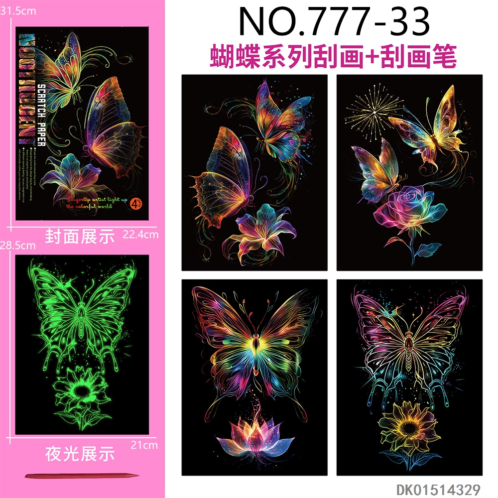 夜光蝴蝶刮刮画炫彩刮画本成人减压创意绘画DIY