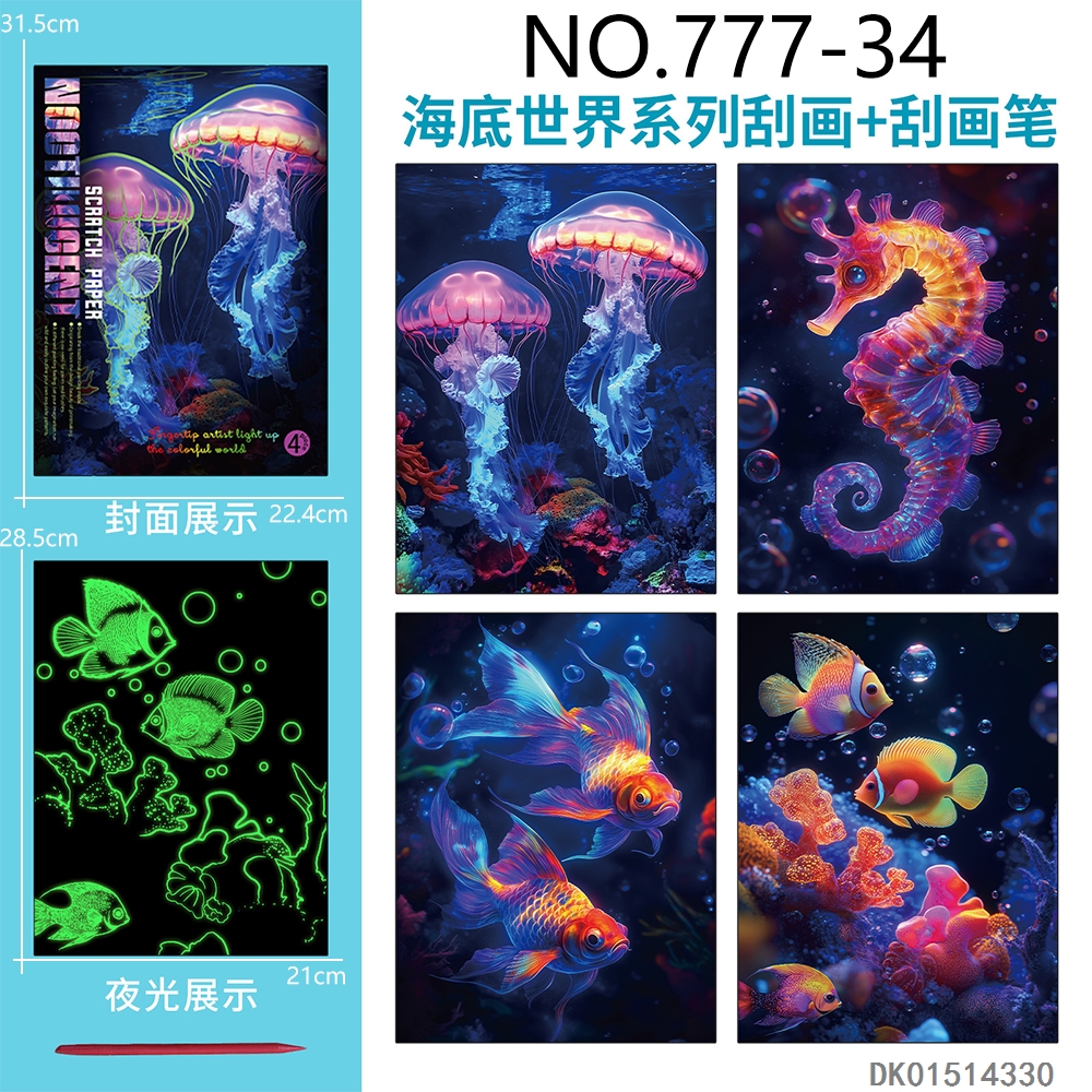 夜光海底世界刮刮画炫彩刮画本成人减压创意绘画DIY