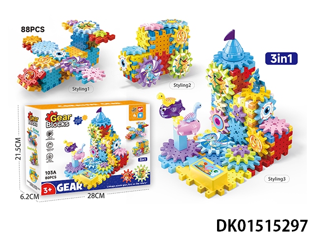 DIY多种造型恐龙旋转齿轮联动旋转积木乐园科教益智有齿轮贴纸