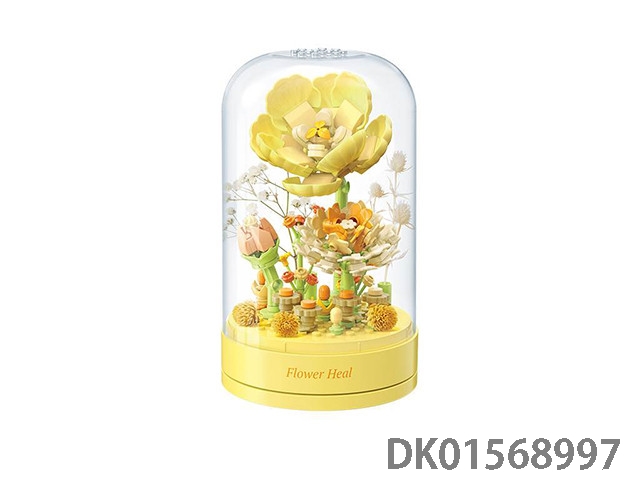 TOPTOY-植物系列-积木花音乐盒-花式治愈-黄TC114积木