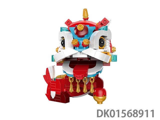 纳福醒狮积木DIY拼装积木舞狮子国风新春节积木小颗粒积木
