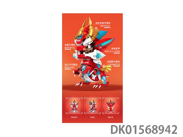 JK5138赤焰机甲龙积木DIY拼装积木龙国风新春节积木小颗粒积木
