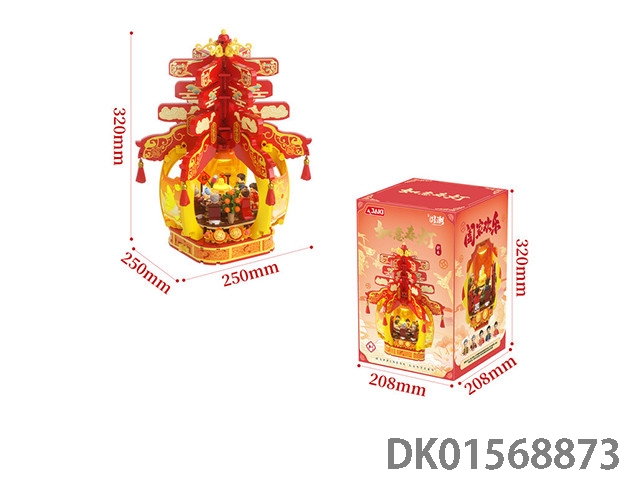 春灯贺岁积木DIY拼装积木人新春节年夜饭团圆饭静态场景摆件小颗粒积木