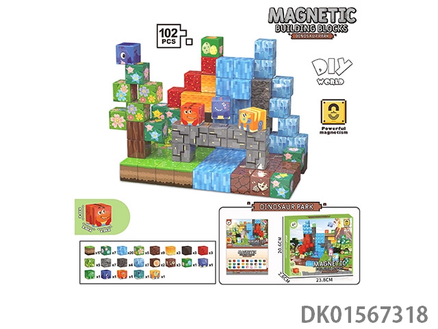 2CM磁力方块拼搭积木DIY穿越恐龙世界102PCS
